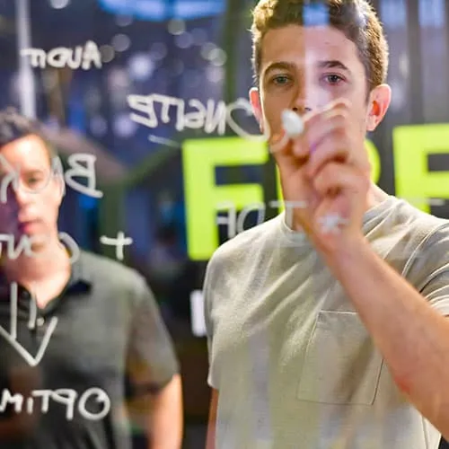 لإضافة عمود رابع، قم بتقليص حجم تلك الأعمدة الثلاثة باستخدام الأيقونة على يمين كل كتلة إنشائية. بعدها، قم بإنشاء نسخة مطابقة لأحد الأعمدة لإنشاء واحد جديد كنسخة.